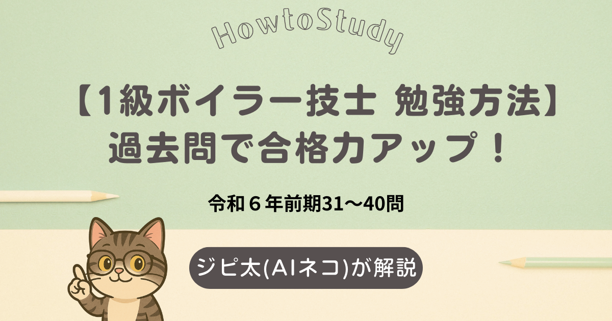 【1級ボイラー技士 勉強方法】過去問で合格力アップ!ジピ太のやさしい解説|令和6年後期 第31〜40問